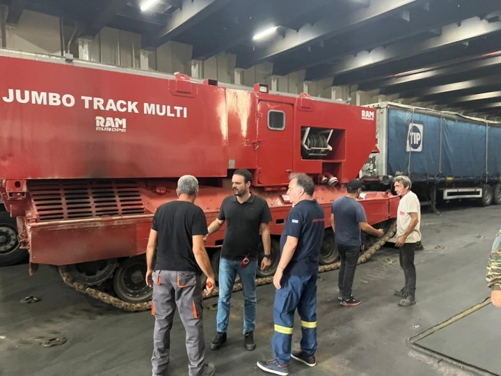 “Έφτασε μόλις στο λιμάνι της Ρόδου από τον Ορχομενό, το πυροσβεστικό και διασωστικό ερπυστριοφόρο όχημα JUMBO TRACK MULTI της εταιρείας RAM EUROPE.