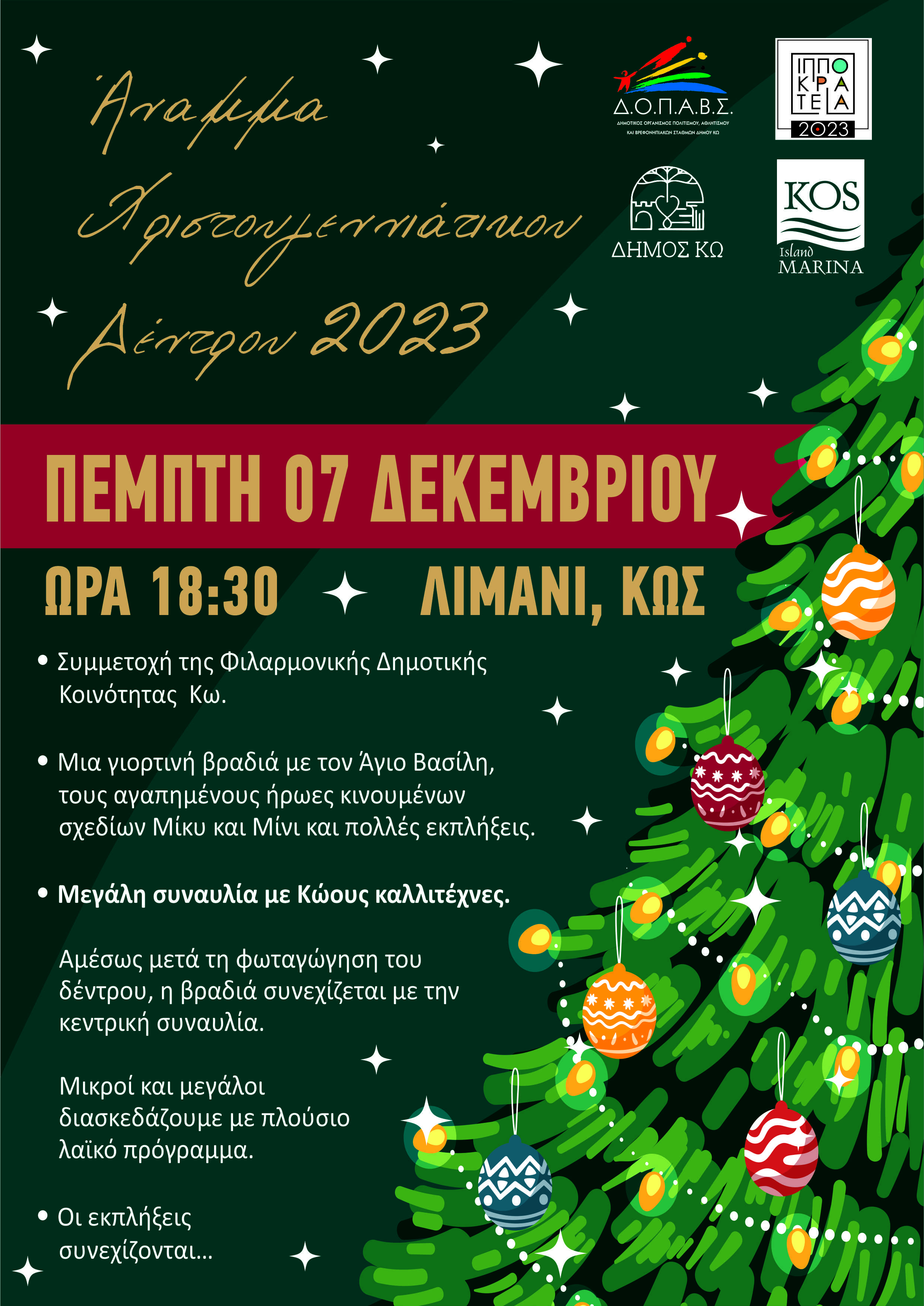 Xριστουγεννιάτικου δέντρου στην Κω στις 18.30 στο λιμάνι της