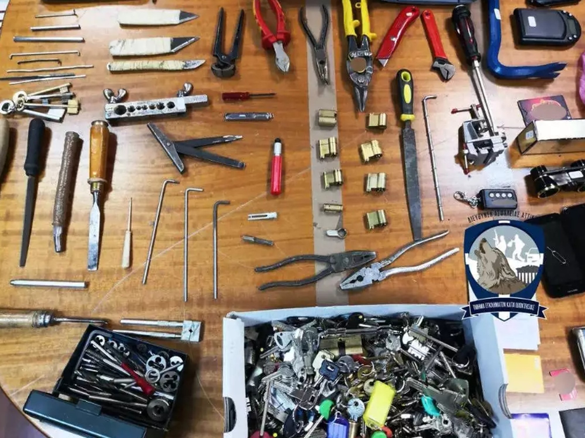 * πλήθος διαρρηκτικών εργαλείων και κλειδαριών,