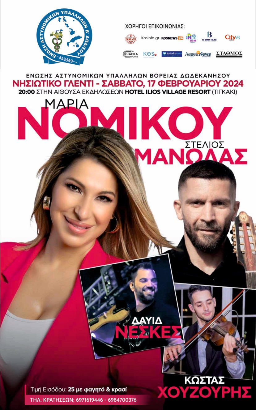 Ένωση Αστυνομικών Υπαλλήλων Βόρειας Δωδεκανήσου: ΝΗΣΙΩΤΙΚΟ ΓΛΕΝΤΙ το Σάββατο 17/02/2024