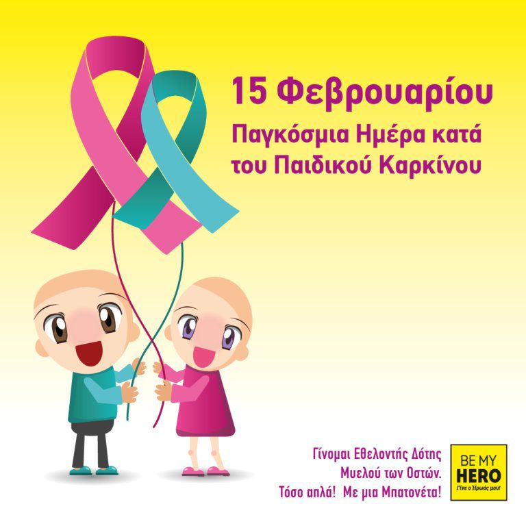 Η 15η Φεβρουαρίου έχει οριστεί ως Παγκόσμια Ημέρα κατά του Παιδικού Καρκίνου, μια ασθένεια σπάνια στη παιδική ηλικία, να αποτελεί- ωστόσο- τη δεύτερη αιτία θανάτου στα παιδιά. Η έγκαιρή διάγνωση και η ευαισθητοποίηση όλων μας να γίνουμε Εθελοντές Δότες Μυελού των οστών μπορούν να αποβούν σωτήριες.