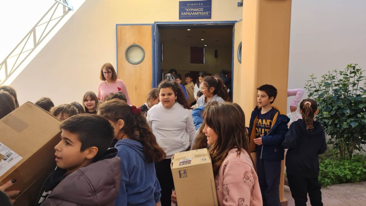 Share Facebook Twitter LinkedIn Pinterest Email Τα παιδιά του 1ου Δημοτικού Σχολείου Κω συγκέντρωσαν και παρέδωσαν σήμερα το πρωί τρόφιμα και είδη πρώτης ανάγκης για τους σεισμόπληκτους Τουρκίας – Συρίας στον Οργανισμό Διαχείρισης Κτημάτων Βακούφ Κω. Κως