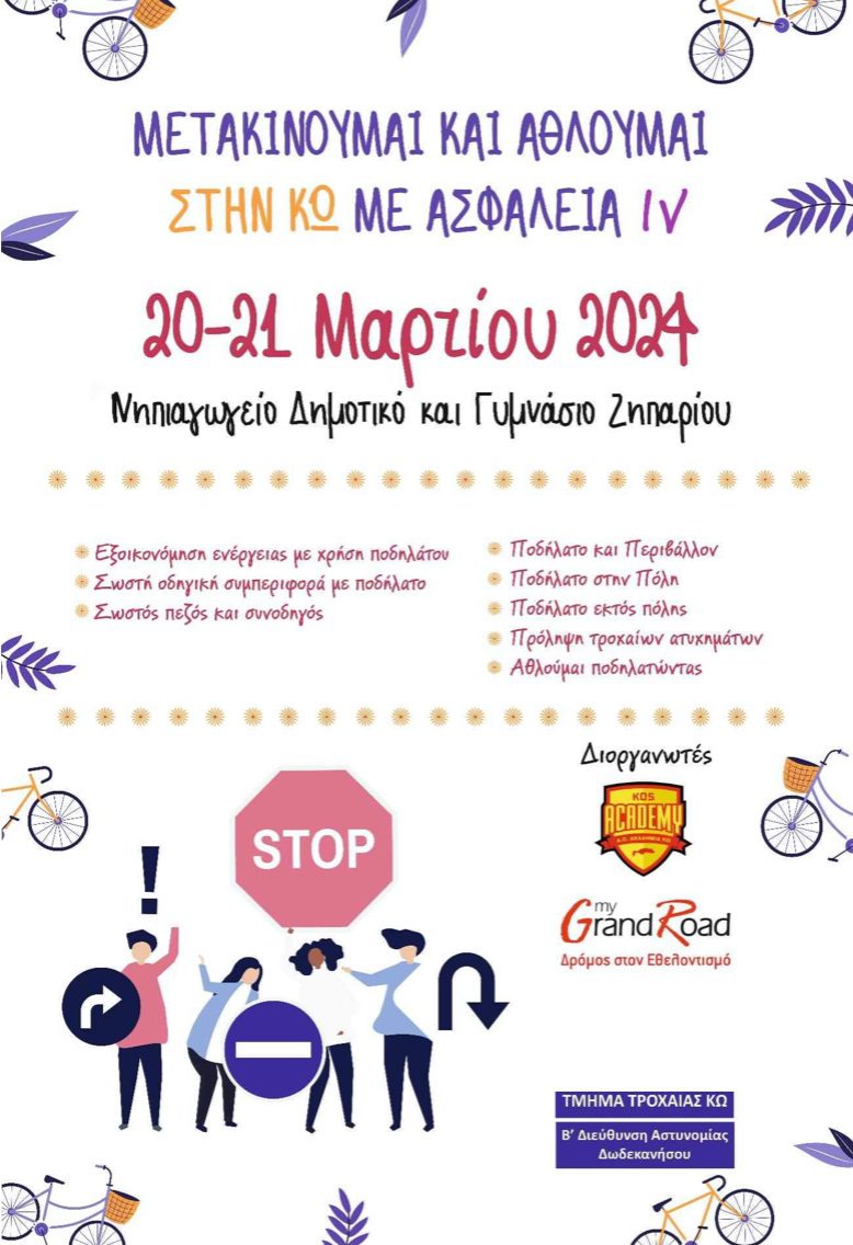 Η δράση «Μετακινούμαι και Αθλούμαι στην Κω με Ασφάλεια IV» θα φιλοξενηθεί αυτή τη φορά στο Ζηπάρι, για δύο ημέρες, την Τετάρτη και την Πέμπτη, 20 και 21 Μαρτίου.
