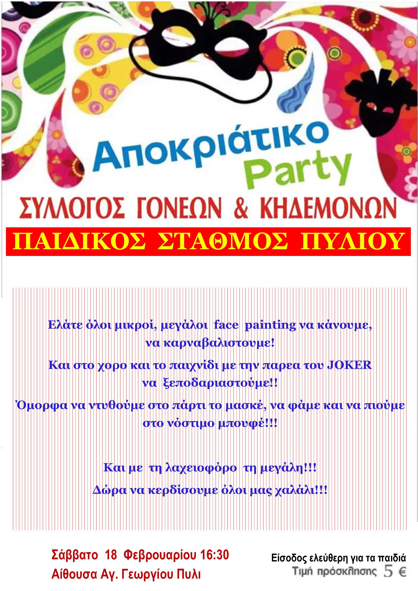 Αποκριάτικο πάρτι από το Σύλλογο Γονέων και Κηδεμόνων του Παιδικού Σταθμού Πυλίου