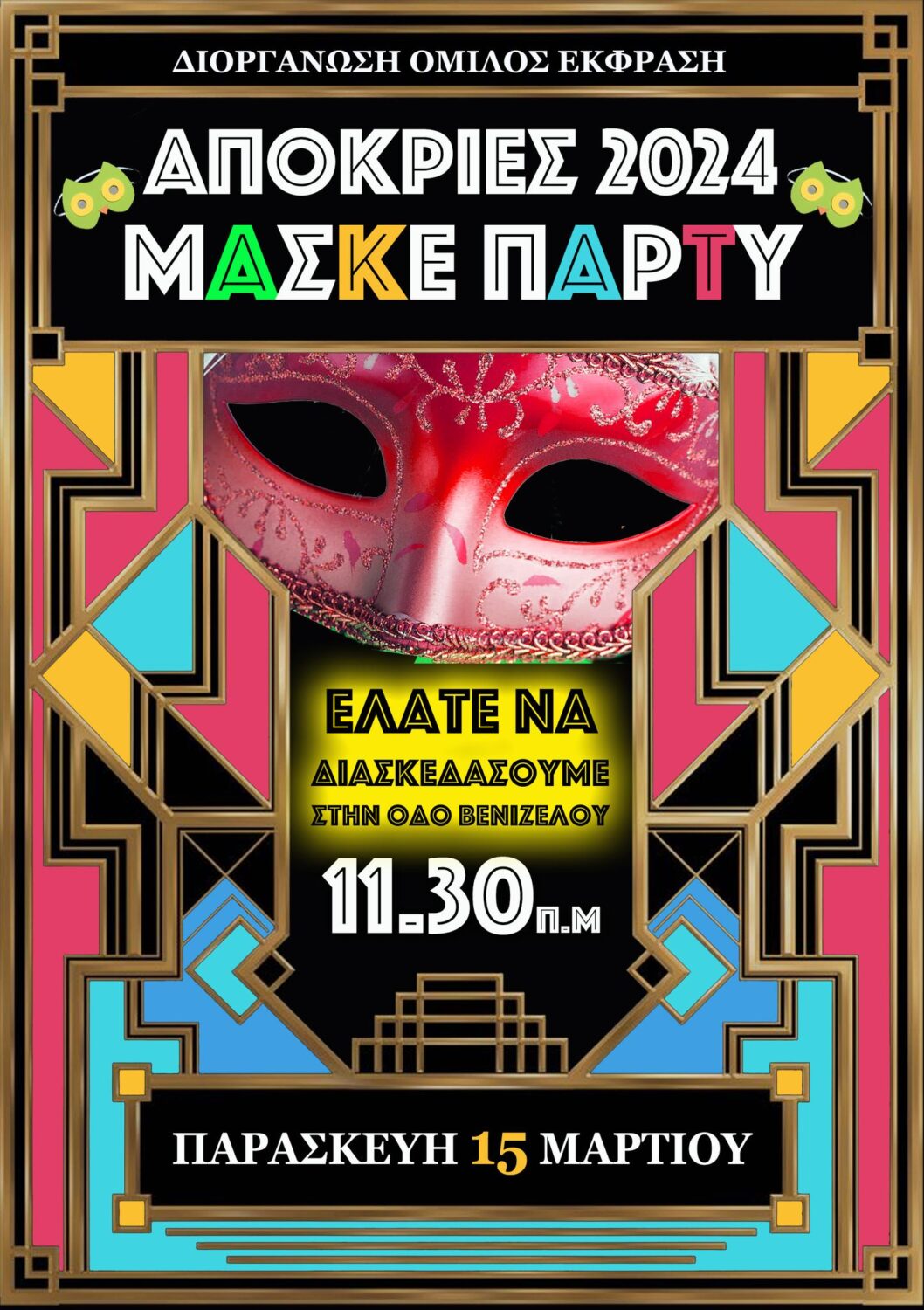 ΑΠΟΚΡΙΕΣ 2024 – ΜΑΣΚΕ ΠΑΡΤΥ την Παρασκευή 15 Μαρτίου από τον ΕΚΦΡΑΣΗ