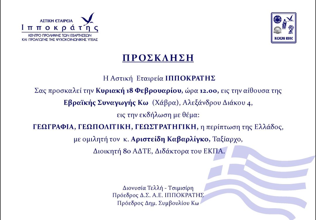Αστική εταιρεία Ιπποκράτης: Πρόσκληση σε εκδήλωση