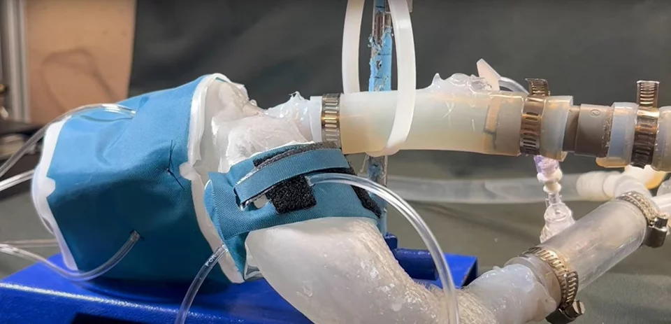 Μόλις δημιουργήθηκε, η καρδιά συνδέθηκε με ένα σύστημα που αντλεί αέρα μέσα και έξω, μιμούμενο τη ροή του αίματος σε έναν ασθενή με στένωση αορτής. Στη συνέχεια δοκίμασαν την εφαρμογή διαφορετικών βαλβίδων στο μοντέλο, για να μετρήσουν πώς άλλαξε η ροή.