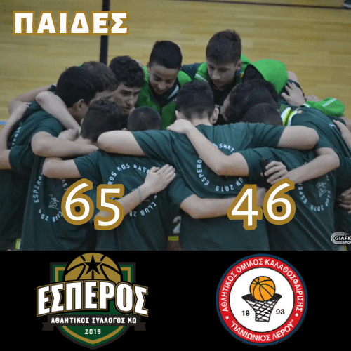 Το Παιδικό μας τμήμα νίκησε τον Πανιώνιο Λέρου με 65-46 και βρίσκεται με το ενάμιση πόδι στην τελική φάση που θα διεξαχθεί στο νησί της Αρτέμιδος.