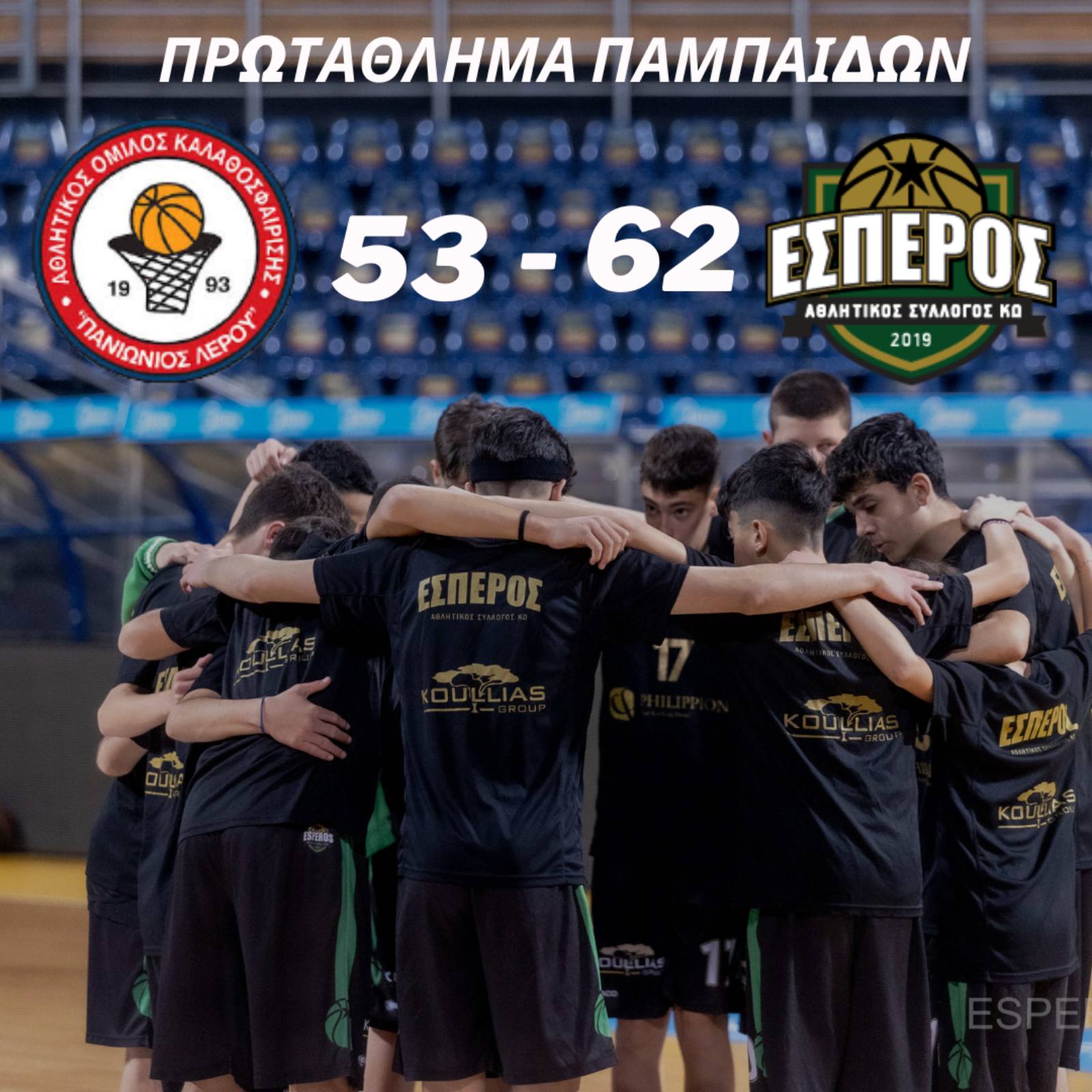 ΑΣ ΕΣΠΕΡΟΣ ΚΩ: Πρώτοι στον όμιλο νήσων οι Παμπαίδες του Έσπερου Κω.