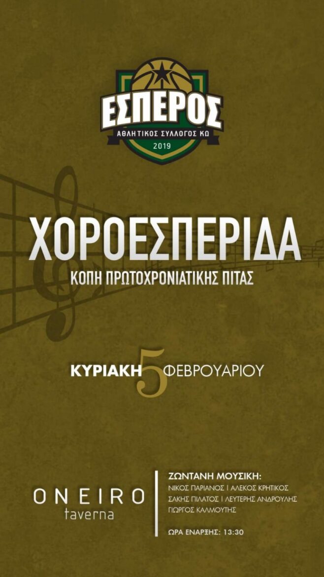 Share Facebook Twitter LinkedIn Pinterest Email ΑΣ ΕΣΠΕΡΟΣ ΚΩ: ΧΟΡΟΕΣΠΕΡΙΔΑ- ΚΟΠΗ ΠΡΩΤΟΧΡΟΝΙΑΤΙΚΗΣ ΠΙΤΑΣ Έσπερος Κω