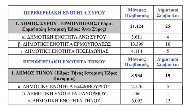 Ειδικότερα, στο παρακάτω έγγραφο θα δείτε πόσοι δημοτικοί σύμβουλοι εκλέγονται ανά δήμο – δημοτική ενότητα, μετά τις αυτοδιοικητικές εκλογές του Οκτωβρίου, με βάση τα επικαιροποιημένα πληθυσμιακά στοιχεία: