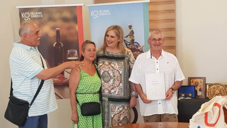 Ακόμα μια συγκινητική στιγμή στο Γραφείο τουριστικής προβολής και ανάπτυξης του Δήμου Κω με τη βράβευση δύο ζευγαριών από Ελβετία που αγαπούν την Κω ως δεύτερο σπίτι τους καθώς επιλέγουν την Κω για τις διακοπές τους εδώ και δεκαετίες και τους συνδέουν στενοί και μακροχρόνιοι δεσμοί φιλίας με την οικογένεια Χατζηαντωνίου.