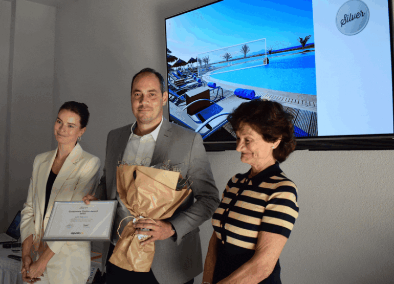 Βραβεύσεις πρακτορείου APOLLO στο ξενοδοχείο BLUE LAGOON City σήμερα το μεσημέρι σε ξενοδοχειακές μονάδες της Κω, Λέρου και Καλύμνου. Η αξιολόγηση έγινε με βάσει τις απαντήσεις σε ερωτηματολόγια που απαντήθηκαν απο τους πελάτες των ξενοδοχείων των 3 νησιών την προηγούμενη χρονιά. Παεαβρέθηκαν εκτός από τους ιδιοκτήτες – διευθυντές των ξενοδοχείων, ο Δήμαρχος Κω, Θεοδόσης Νικηταράς, ο πρόεδρος της ΔΕΥΑΚ, Κων/νος Ζαχαρός και η πρόεδρος της Ένωσης Ξενοδόχων Κω, Ντίνα Σβύνου.