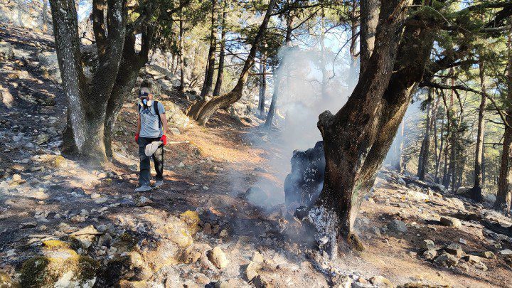 Από νωρίς το πρωί ξεκίνησαν οι ρίψεις νερού από πυροσβεστικά αεροπλάνα και ελικόπτερα, ενώ έχουν ενισχυθεί και πρόκειται να ενισχυθούν κατά τη διάρκεια της ημέρας με πεζοπόρα τμήματα και οχήματα οι δυνάμεις της πυροσβεστικής.