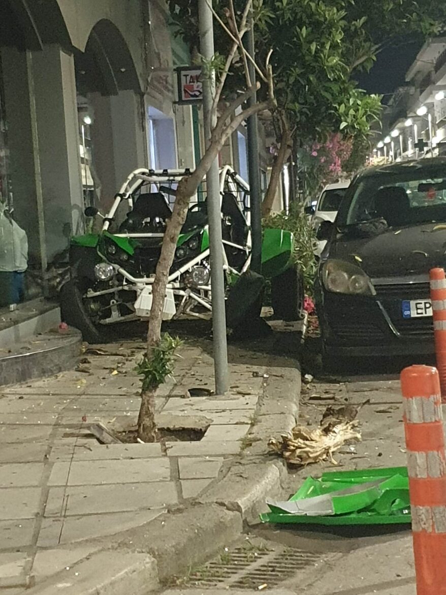 Οδηγός buggy, σύμφωνα με τα πρώτα στοιχεία, κάτω από αδιευκρίνιστες συνθήκες έχασε τον έλεγχο ανέβηκε στο πεζοδρόμιο και προσέκρουσε στον τοίχο.