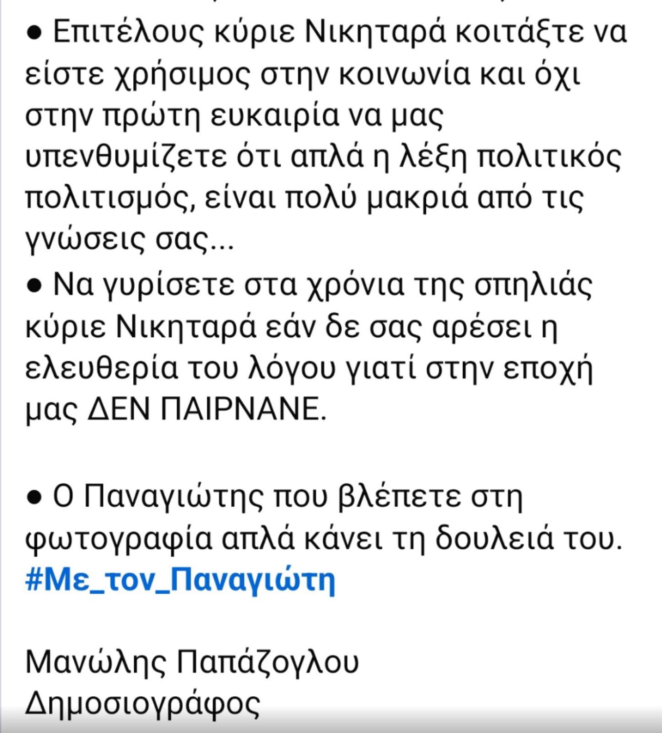 δημόσιας δήλωσης δημοσιογράφου της Ρόδου σε γνωστό ΜΜΕ, με την οποία καλεί τον