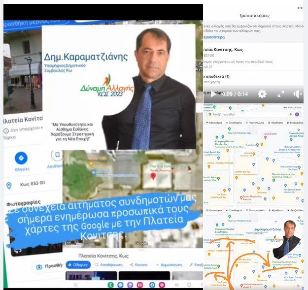 Σε συνέχεια αιτήματος συνδημοτών μας ανέλαβα τη πρωτοβουλία, σε συνεννόηση με τον επικεφαλής της παράταξής μας George Kiritsis και ενημέρωσα προσωπικά με τα απαιτούμενα στοιχεία τους χάρτες της Google, οσο αφορά την Πλατεία Κονίτσης και τον ρόλο της ως Εμπορικό Κεντρο, και όχι μόνο.
