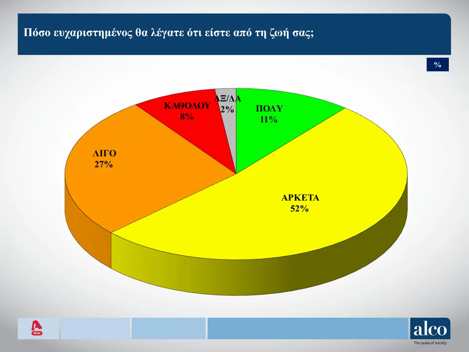 Στο ερώτημα «πόσο ευχαριστημένοι είστε από τη ζωή σας», τα ποσοστά έχουν ως εξής: