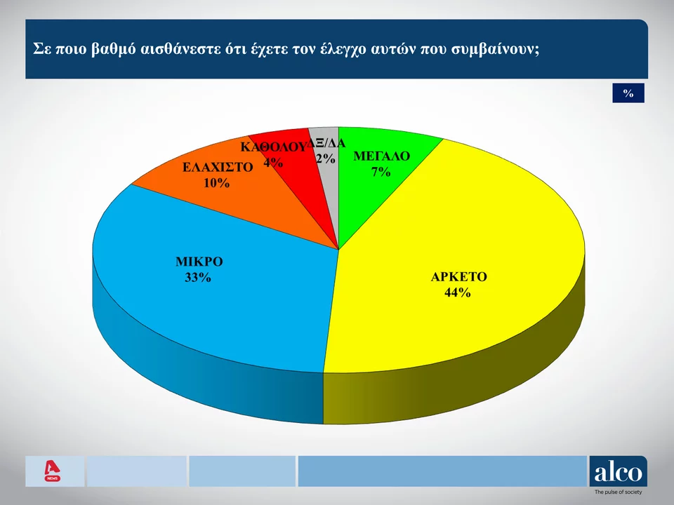 Στο ερώτημα «σε ποιο βαθμό αισθάνεστε ότι έχετε τον έλεγχο όσων σας συμβαίνουν», απάντησαν: