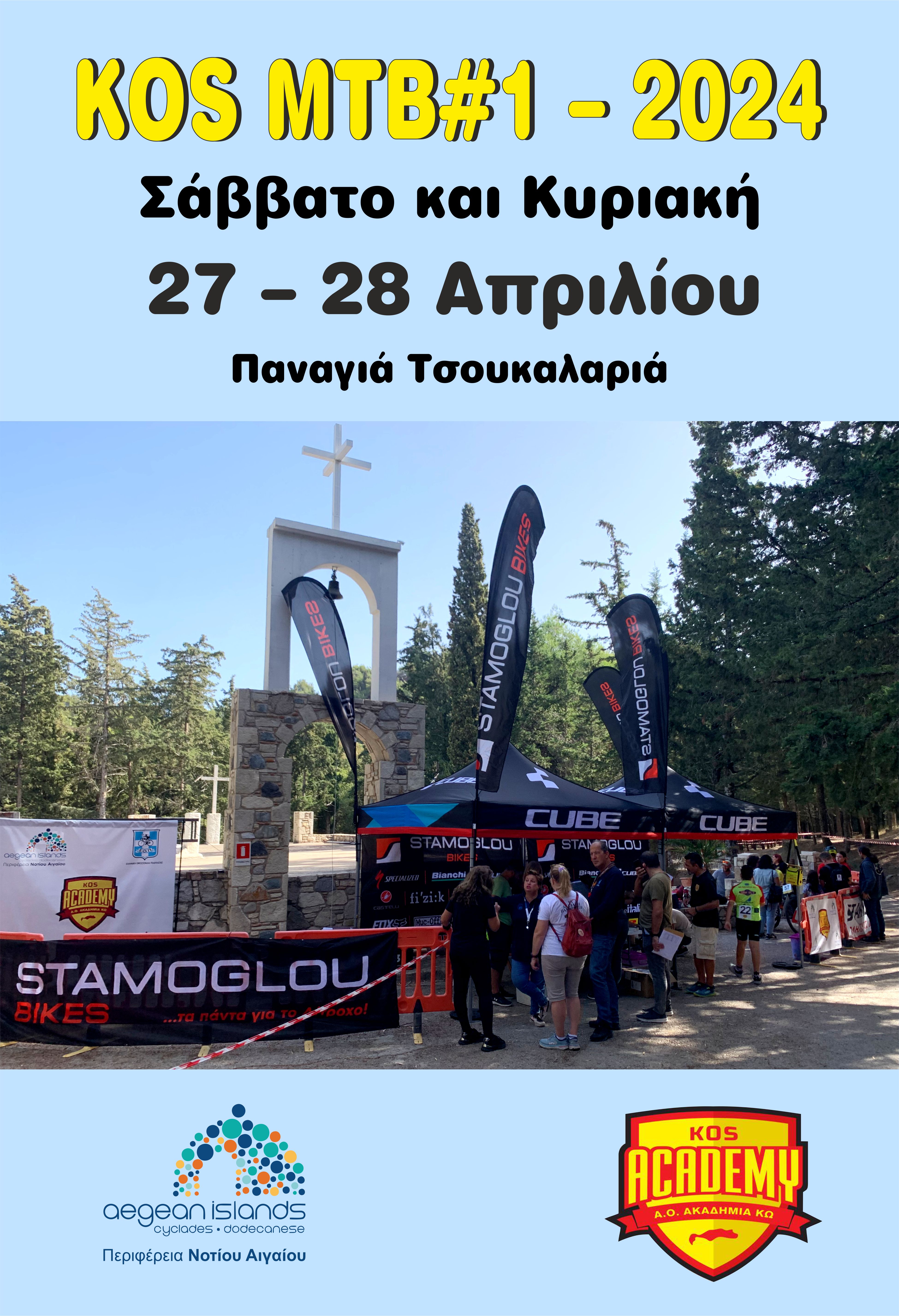 Ο Αθλητικός Όμιλος Ακαδημία Κω, το Σάββατο 27 και την Κυριακή 28 Απριλίου, διοργανώνει διασυλλογικό αγώνα ορεινής ποδηλασίας με τη στήριξη της Περιφέρειας Νοτίου Αιγαίου, με την επωνυμία «KOS MTB#1 – 2024», στην περιοχή της Παναγιάς Τσουκαλαριάς.