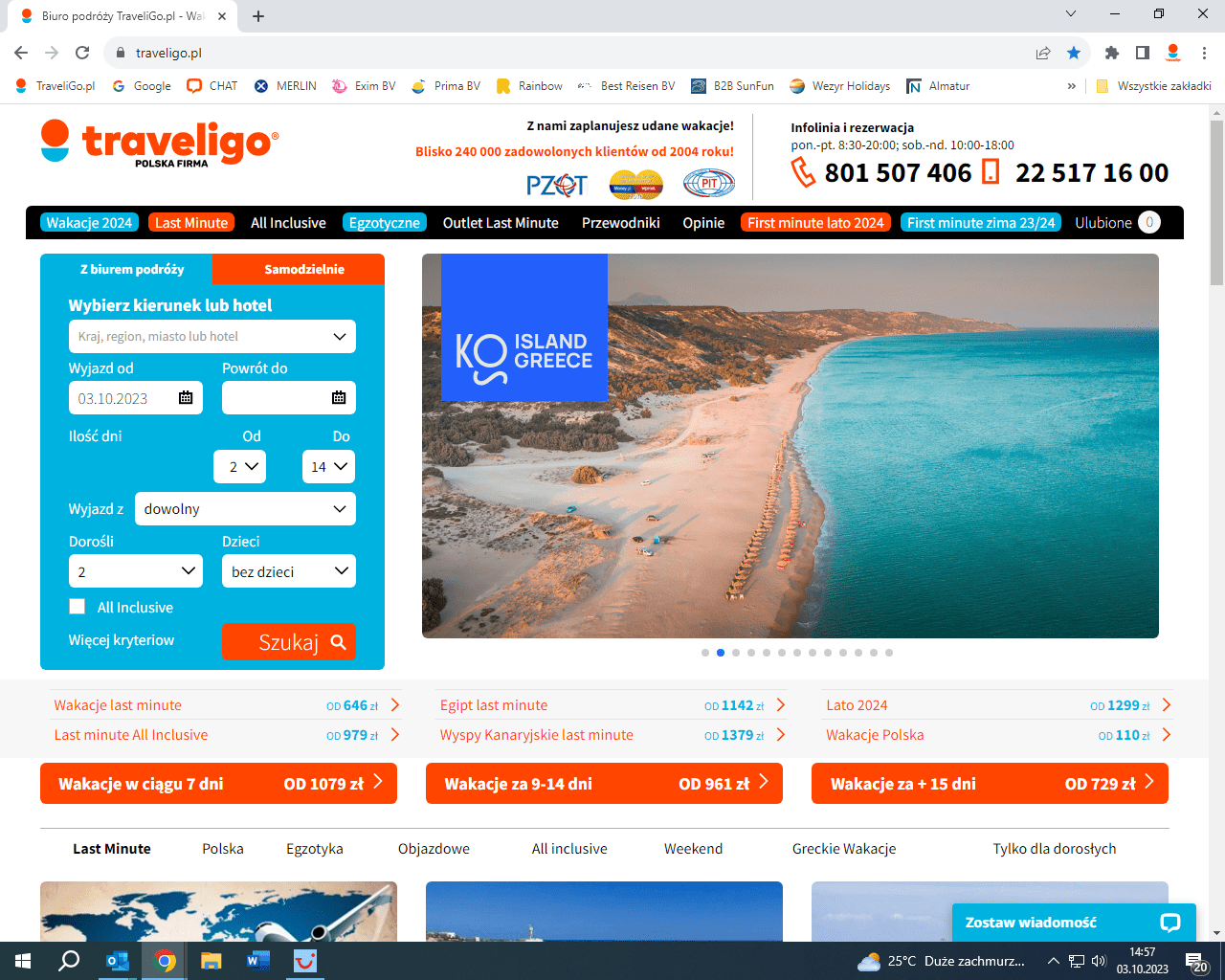 Το ταξιδιωτικό Πολωνικό γραφείο Traveligo είναι μέλος του Πολωνικού Τουριστικού Επιμελητηρίου από το 2004, όπου οι πωλήσεις ταξιδιών αφορούν εκδρομές μέσω των μεγαλύτερων Tour Operators που δραστηριοποιούνται στην πολωνική αγορά (TUI, Itaka, Rainbow Tours, Exim Tours, Coral Travel, Grecos Holiday, Nekera, EBest Reisen, Europe Mountains, Interhome, Wygoda Travel, Snowtrex κ.λπ.).