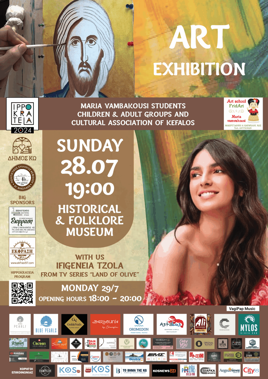 - ΕΚΘΕΣΗ ΖΩΓΡΑΦΙΚΗΣ ΚΑΙ ΑΓΙΟΓΡΑΦΙΑΣ από το ΕΡΓΑΣΤΗΡΙΟ ΖΩΓΡΑΦΙΚΗΣ ΚΑΙ ΑΓΙΟΓΡΑΦΙΑΣ ΤΗΣ ΜΑΡΙΑΣ ΒΑΜΒΑΚΟΥΣΗ σε συνδιοργάνωση με την «ΕΚΦΡΑΣΗ EVENTS», στο ΙΣΤΟΡΙΚΟ-ΛΑΟΓΡΑΦΙΚΟ ΜΟΥΣΕΙΟ ΚΩ, ΚΥΡΙΑΚΗ 28/07/24, ΩΡΑ:19:00 ΕΓΚΑΙΝΙΑ & ΔΕΥΤΕΡΑ 29/07/24, ΩΡΕΣ ΛΕΙΤΟΥΡΓΙΑΣ: 18:00-20:00