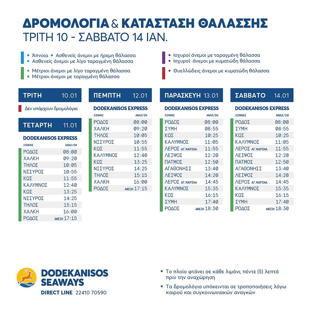 Δρομολόγια DODEKANISOS SEAWAYS από 10-14 Ιανουαρίου 2023.