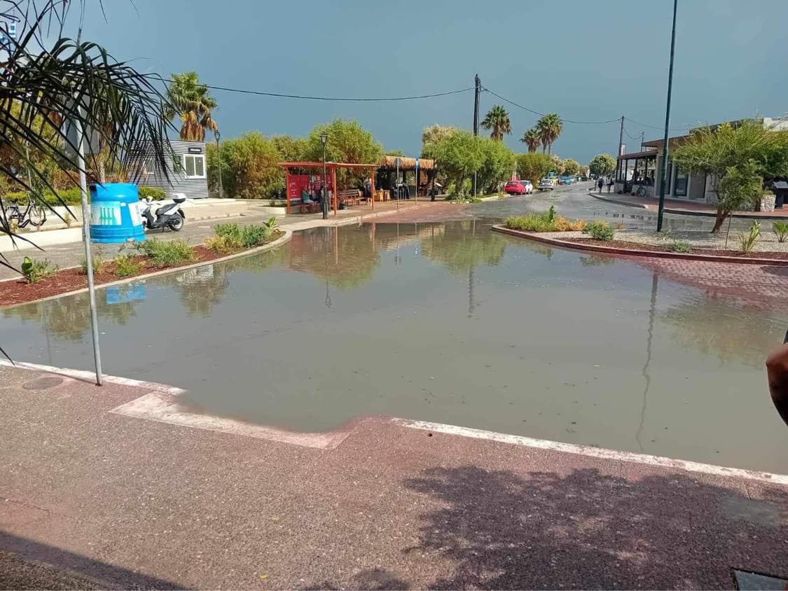 ‘’ Με λίγες σταγόνες βροχής, η πλατεία στο Τιγκάκι ( η ανάπλαση της οποίας ήταν το μοναδικό έργο του κ. Νικηταρά), μετατράπηκε σε λίμνη.