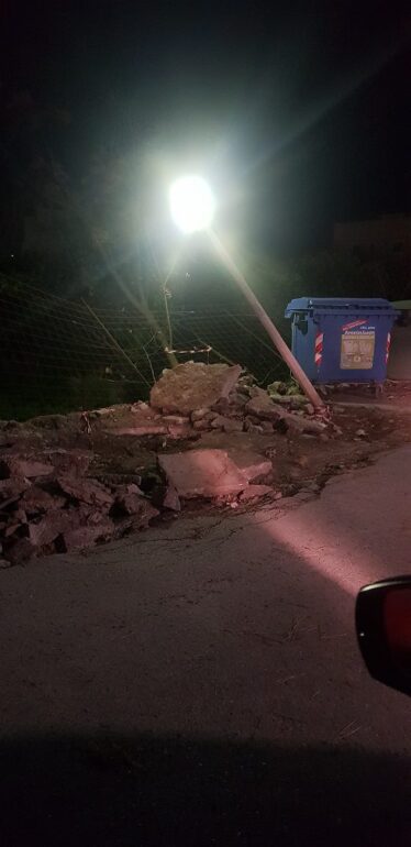 Πιο τραγικό είναι και το πεσμένο φωτιστικό του Δήμου που λειτουργεί ακόμα, αν και είναι πεσμένο, με ότι αυτό μπορεί να προκαλέσει σε όποιον περνά από εκεί.