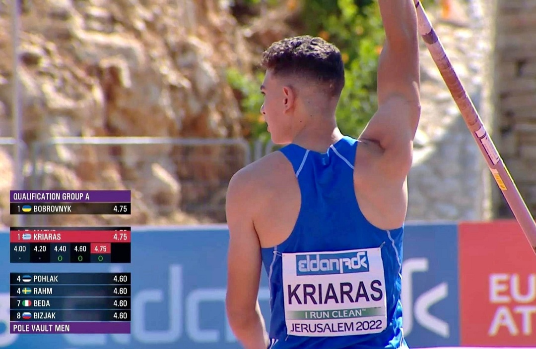 -Άλμα επί κοντώ: Παύλος Κριαράς του ΑΓΕΣ Κάμειρος.