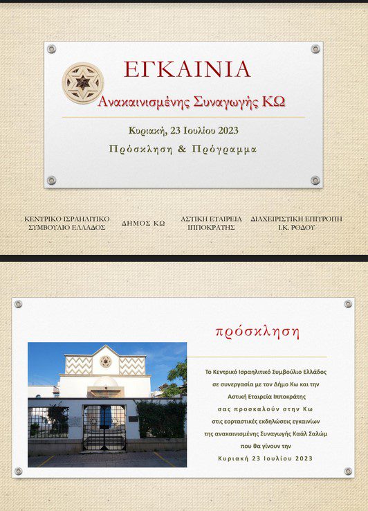 Home»ΡΟΗ ΕΙΔΗΣΕΩΝ»Εγκαίνια Ανακαινισμένης Συναγωγής Κω