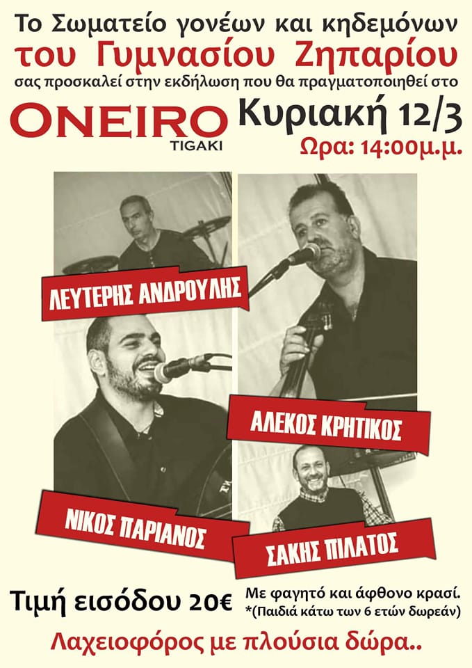 Home»ΡΟΗ ΕΙΔΗΣΕΩΝ»Εκδήλωση στο “ΌΝΕΙΡΟ” από το Γυμνάσιο Ζηπαρίου στις 12/03