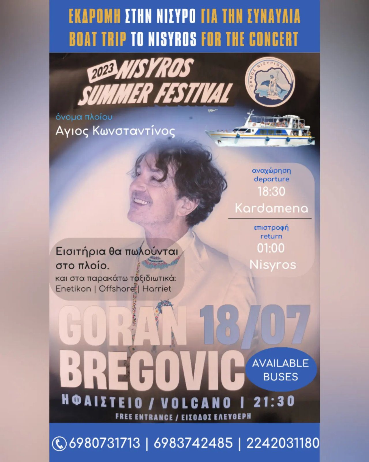 Share Facebook Twitter LinkedIn Pinterest Email Όλα έτοιμα για τη μεγάλη συναυλία του Goran Bregovic στο Ηφαίστειο της Νισύρου Νίσυρος