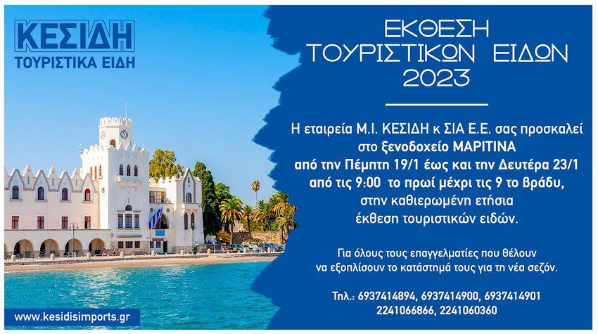 Share Facebook Twitter LinkedIn Pinterest Email ΕΚΘΕΣΗ ΤΟΥΡΙΣΤΙΚΩΝ ΕΙΔΩΝ 2023 από Πέμπτη 19/01 έως Δευτέρα 23/01 στο ξεν. Μαριτίνα Τουρισμός