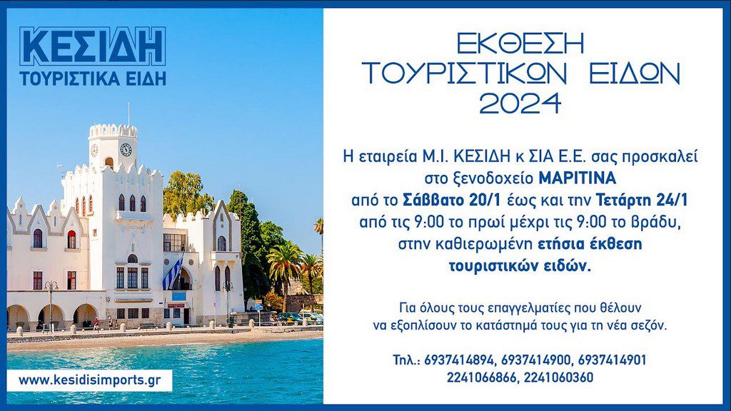 ΕΚΘΕΣΗ ΤΟΥΡΙΣΤΙΚΩΝ ΕΙΔΩΝ 2024 στην Κω! Για όλους τους επαγγελματίες που θέλουν να εξοπλίσουν το κατάστημά τους για τη νέα σεζόν