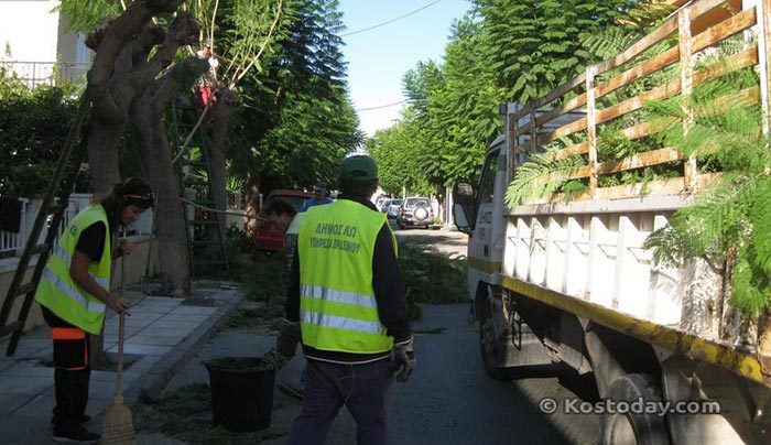 στον κοινόχρηστο χώρο έξω από τον αύλειο χώρο έμπροσθεν της κατοικίας τους, τα προϊόντα κλάδευσης, σε σημείο που να μην