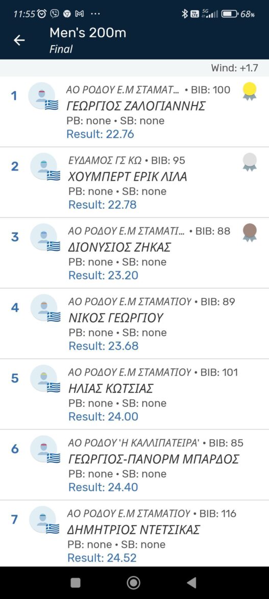 Ο ίδιος κατέκτησε την 1η θέση στο αγώνισμα των 200 m με ατομικό ρεκόρ και όριο 22″78.