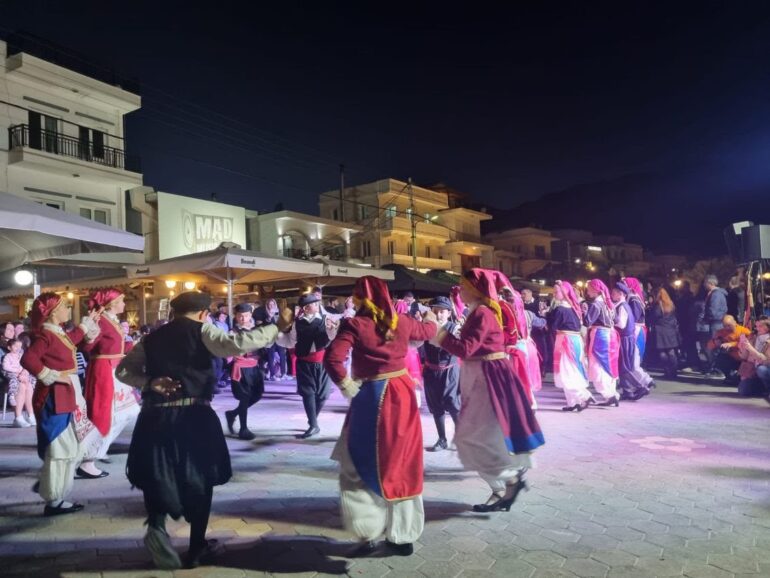 Το βράδυ η κ. Εμμανουήλ βρέθηκε στην πλατεία του νησιού, όπου παρουσία πλήθους κόσμου, και στο πλαίσιο των Πασχαλινών εκδηλώσεων του Δήμου, έγινε παρουσίαση παραδοσιακών χορών από όλη την Ελλάδα, σε συνδιοργάνωση με τον Παραδοσιακό Λαογραφικό Χορευτικό Σύλλογο Καλύμνου.
