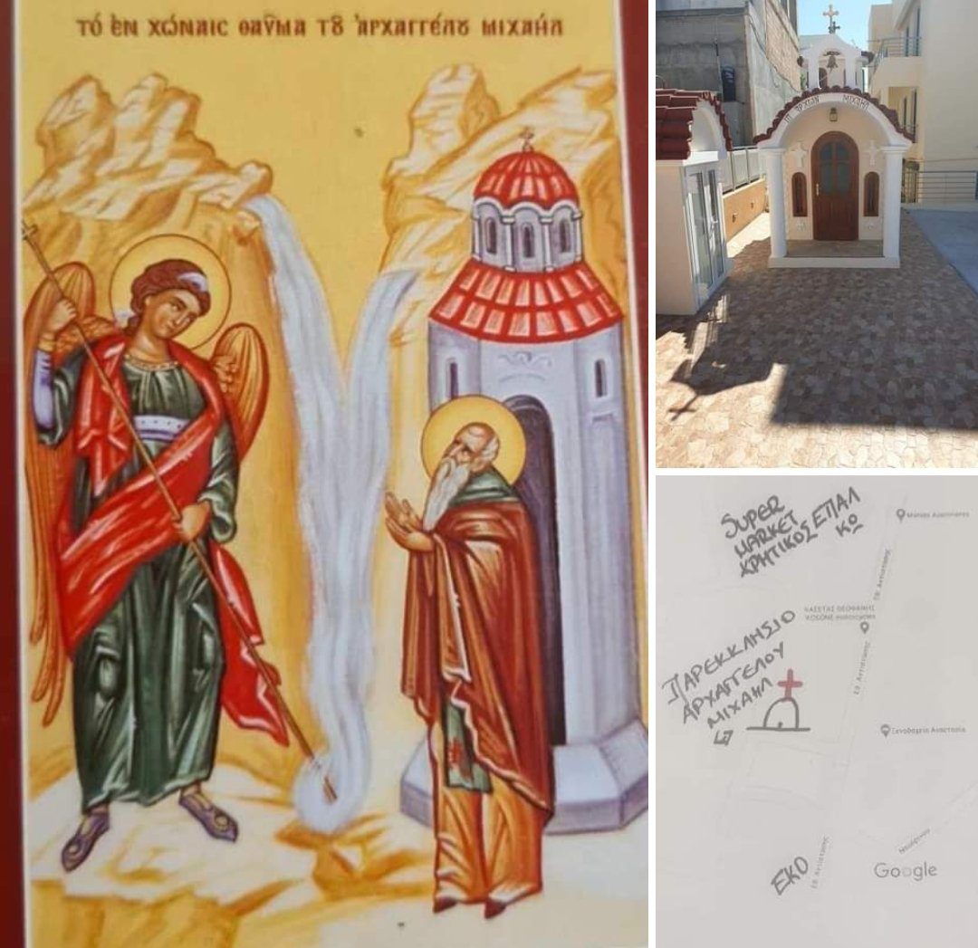 Τιμώντας “το εν χωναι θαύμα του Αρχαγγέλου Μιχαήλ”, θα τελέσουμε εσπερινό την Τρίτη 5 Σεπτεμβρίου στις 19.00 και ανήμερα της γιορτής Του την Τετάρτη 6 Σεπτεμβρίου θα τελεσουμε λειτουργία.