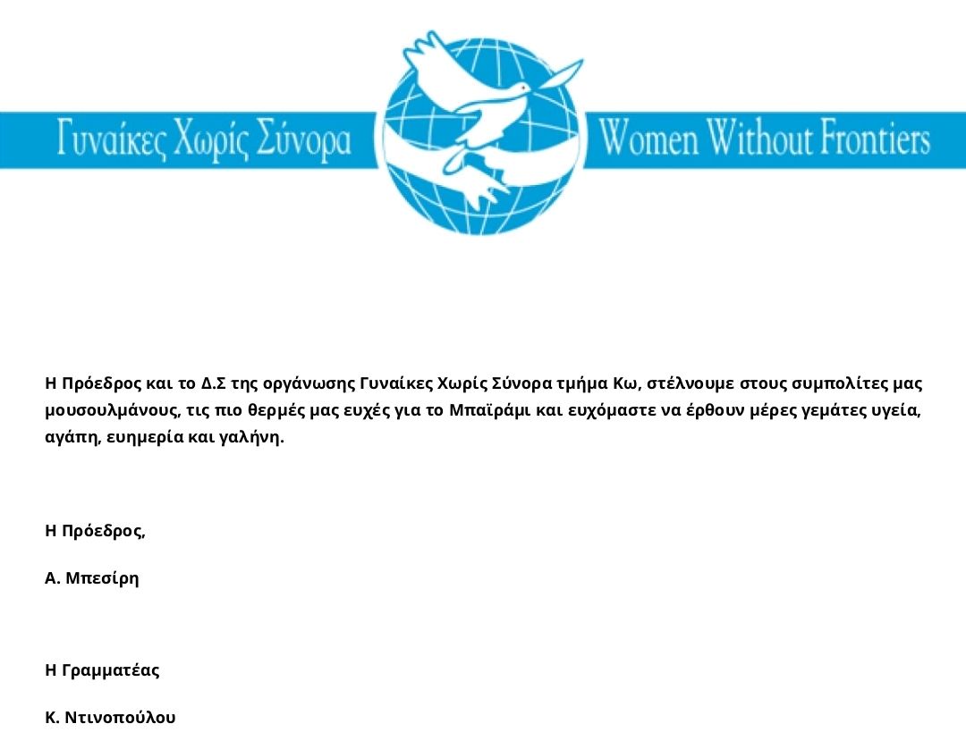 Ευχές από τις “Γυναίκες Χωρίς Σύνορα τμήμα Κω” για το μπαϊράμι
