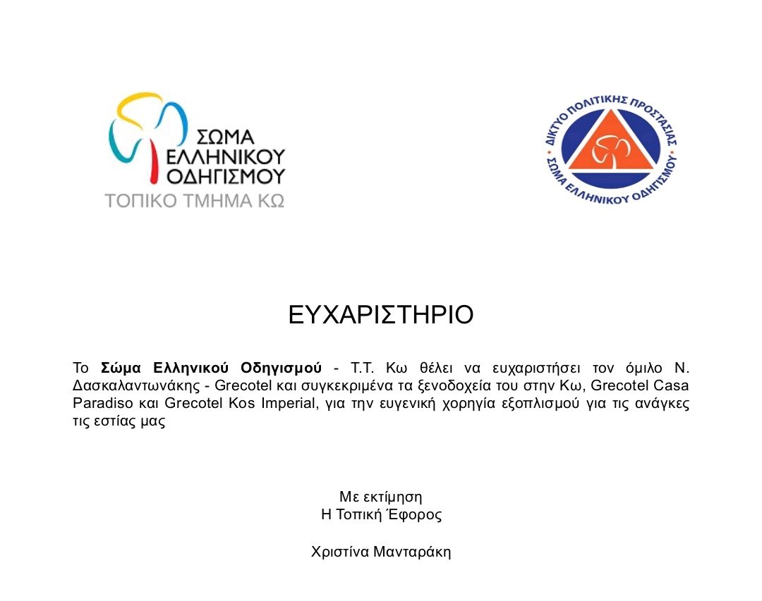 Home»ΡΟΗ ΕΙΔΗΣΕΩΝ»Ευχαριστήριο από το Σώμα Ελληνικού Οδηγισμού στον όμιλο Grecotel