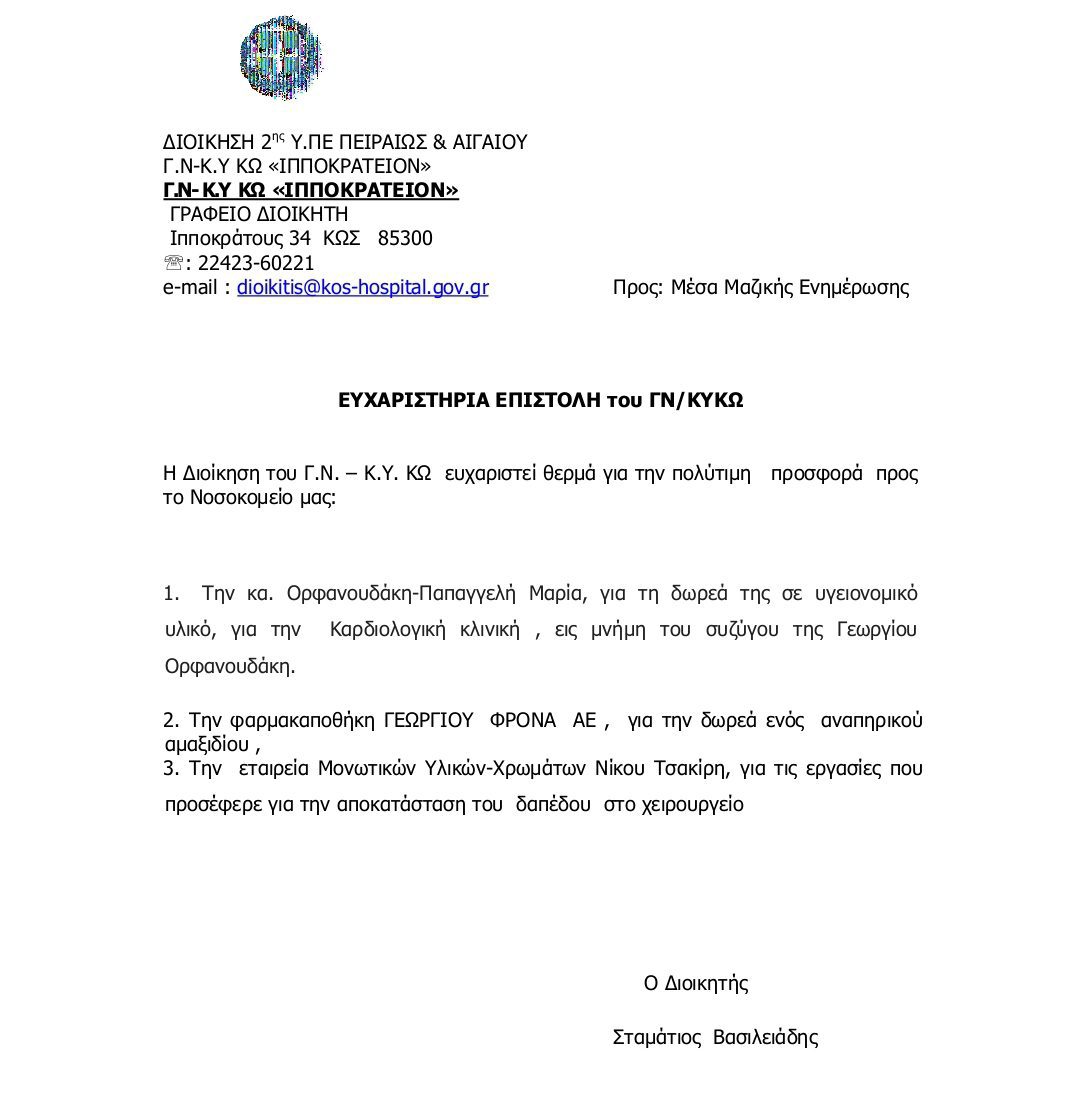 Home»ΡΟΗ ΕΙΔΗΣΕΩΝ»ΕΥΧΑΡΙΣΤΗΡΙΑ ΕΠΙΣΤΟΛΗ ΓΝ-ΚΥ ΚΩ