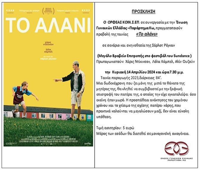 Η Ε.Γ.Ε. Παράρτημα Κω σε συνεργασία με τον Κινηματογράφο Ορφέα παρουσιάζουν μια απλή, ακαταμάχητη και απέραντα τρυφερή ιστορία. Βραβευμένο στο Φεστιβάλ του Σάντανς (καλύτερη διεθνής ταινία) μέσα από ευφάνταστο χιούμορ, κρατά απόσταση από το βρετανικό σινεμά της εργατικής τάξης και αφηγείται τη μαγική ιστορία δυο μπερδεμένων ανθρώπων: μιας κόρης που αναγκάζεται να ενηλικιωθεί απότομα και ενός πατέρα που τα βρίσκει πραγματικά σκούρα.