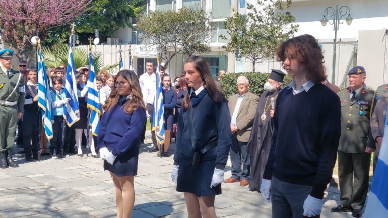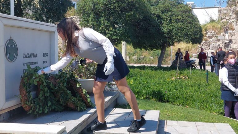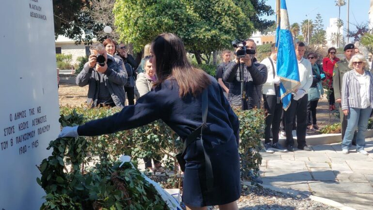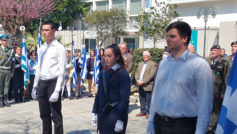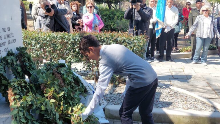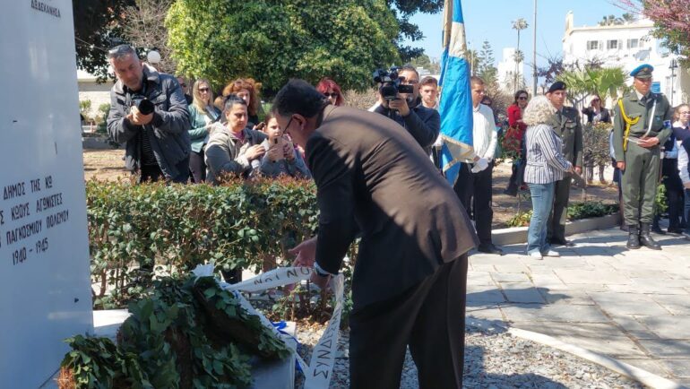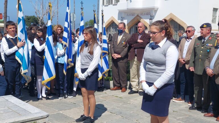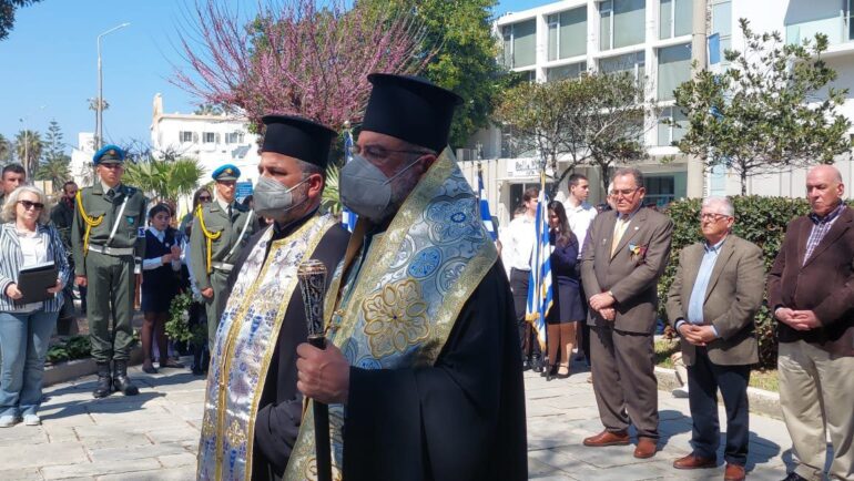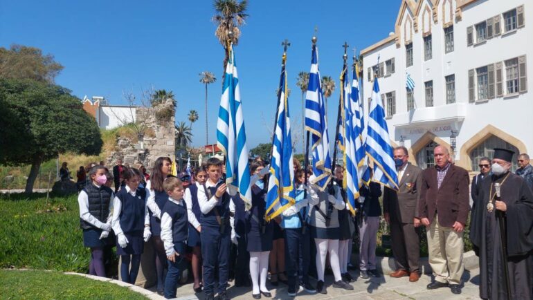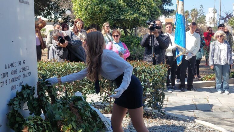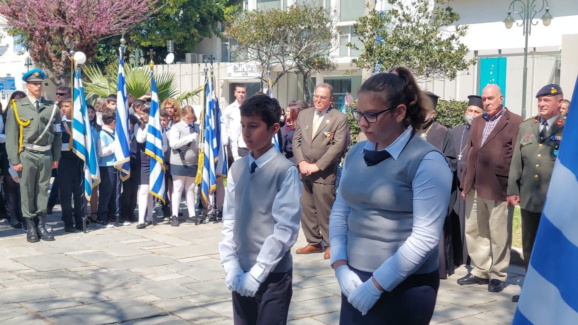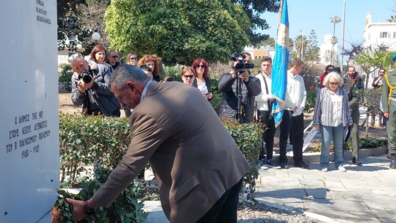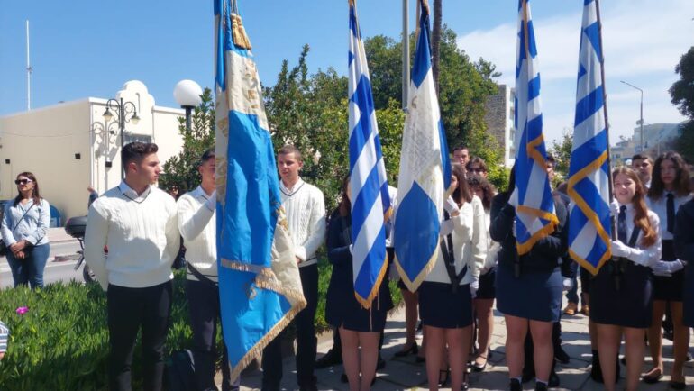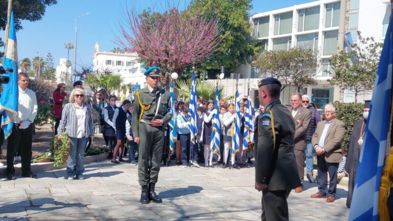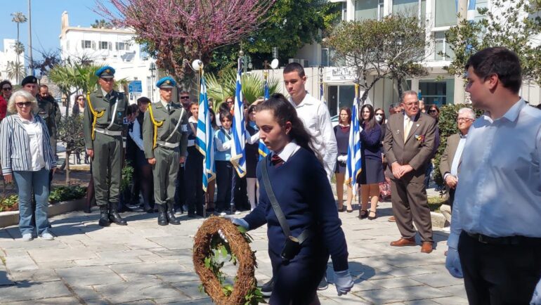 Πραγματοποιήθηκε σήμερα, παραμονή της Εθνικής επετείου της 25ης Μαρτίου, στην πόλη της Κω, η καθιερωμένη κατάθεση στεφάνων από αντιπροσωπείες μαθητών των Δημοτικών, Γυμνασίων και Λυκείων στο Ηρώο της πόλης.