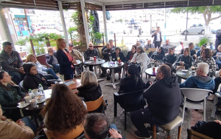 Μεγάλη ανταπόκριση υπήρξε από τους πολίτες στο κάλεσμα της Μίκας Ιατρίδη την Παρασκευή 5 Μαΐου το απόγευμα κατά τη διάρκεια του οποίου σε πανηγυρικό κλίμα η υπ. Βουλευτής της Νέας Δημοκρατίας μίλησε στους παρευρισκόμενους για τη σημασία των επικείμενων εκλογών, το έργο που έκανε η Κυβέρνηση στα νησιά μας, και τους ευχαρίστησε προσωπικά όλους για τη συνεχή και ουσιαστική εμπιστοσύνη που δείχνουν στο πρόσωπο της.