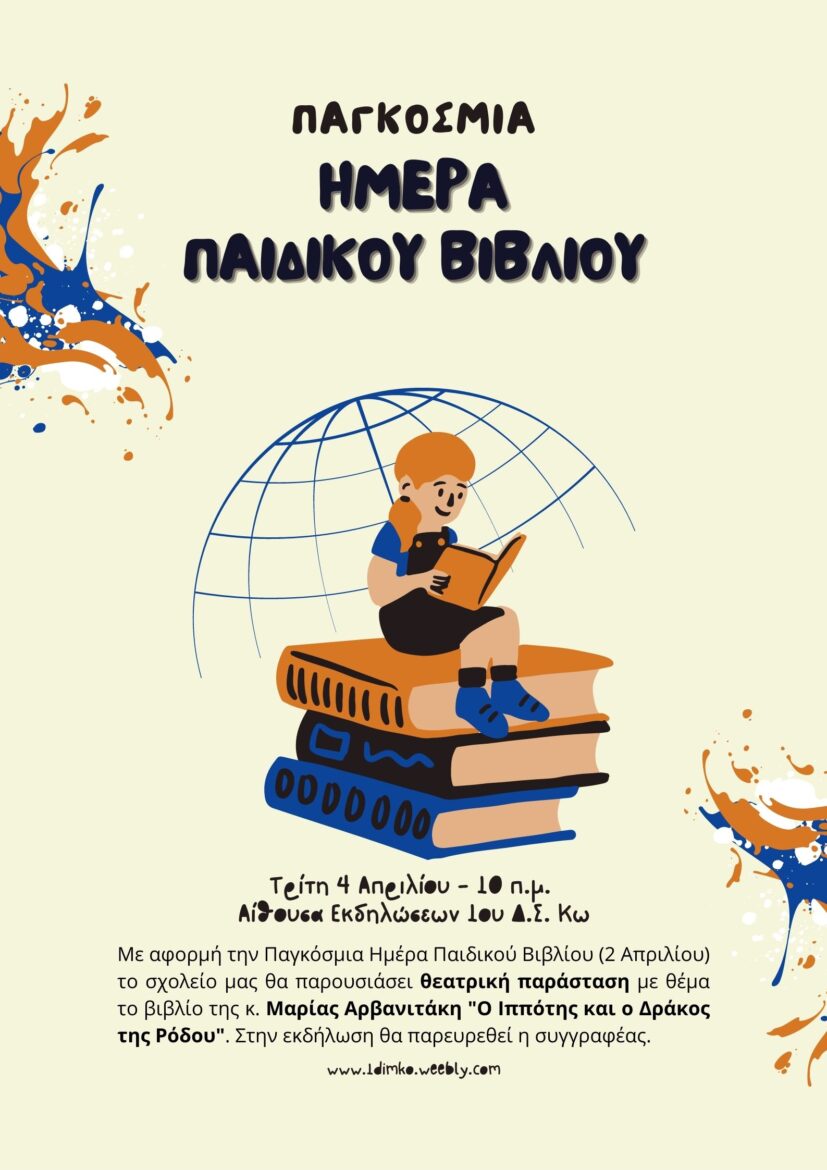Το 1ο Δημοτικό Σχολείο Κω στα πλαίσια του εορτασμού της Παγκόσμιας Ημέρας Παιδικού Βιβλίου, διοργανώνει θεατρική παράσταση, βασισμένη στο παιδικό μυθιστόρημα “Ο Ιππότης και ο Δράκος της Ρόδου”.
