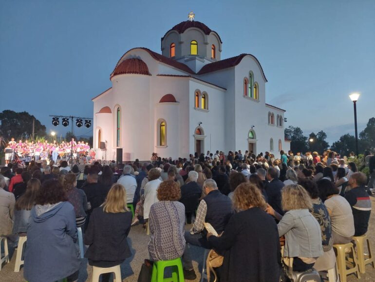 Μαγευτική εικόνα δίπλα στον ιερό ναό του Αγίου Γεωργίου. Καταπληκτικοί οι μουσικοί τα μέλη της χορωδίας καθώς και ο υπεύθυνος Χρήστος Γαμβρέλλης.