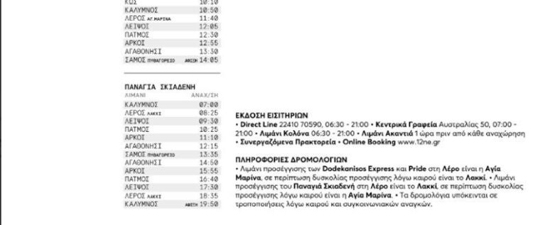 Δείτε το πλήρες πρόγραμμα των πλοίων της DODEKANISOS SEAWAYS μέχρι 14 Μαϊου 2023