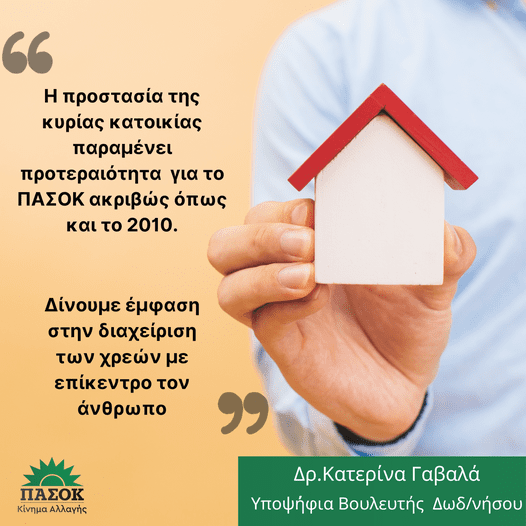 Με αφορμή το μείζον ζήτημα των πλειστηριασμών μέσω funds αλλά και το διαχρονικό πρόβλημα της μη προστασίας της πρώτης κατοικίας των δανειοληπτών, η υποψήφια Βουλευτής Δωδεκανήσου ΠΑΣΟΚ-ΚΙΝΑΛ Κατερίνα Γαβαλά δήλωσε ότι: