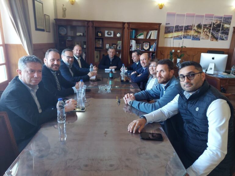 Στην συνέχεια έγινε συνάντηση στην αίθουσα του Επιμελητηρίου με φορείς του νησιού.